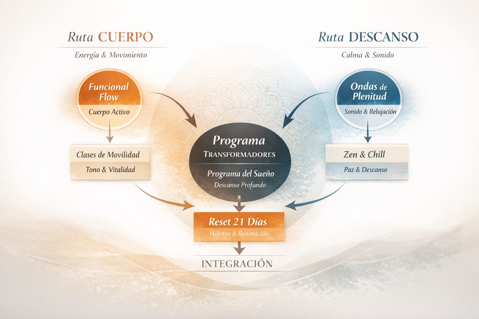 Espacios guiados que combinan respiración, movimiento suave y quietud, para soltar, mejorar el descanso y abrir espacio emocional, ayudando al cuerpo a liberar tensiones.